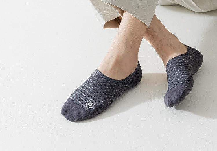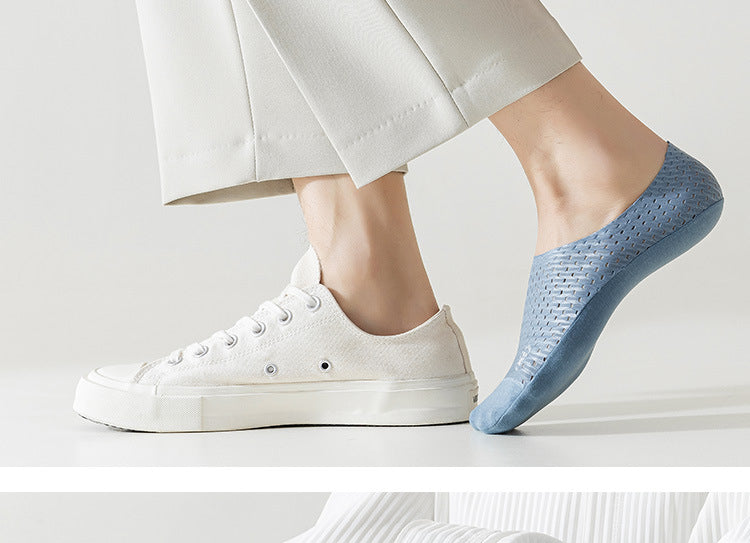 Experience the ultimate in comfort and invisibility with these men's no-show ice silk socks. Featuring a breathable mesh design and non-slip silicone grip, these socks keep your feet cool, dry, and securely in place all day long.